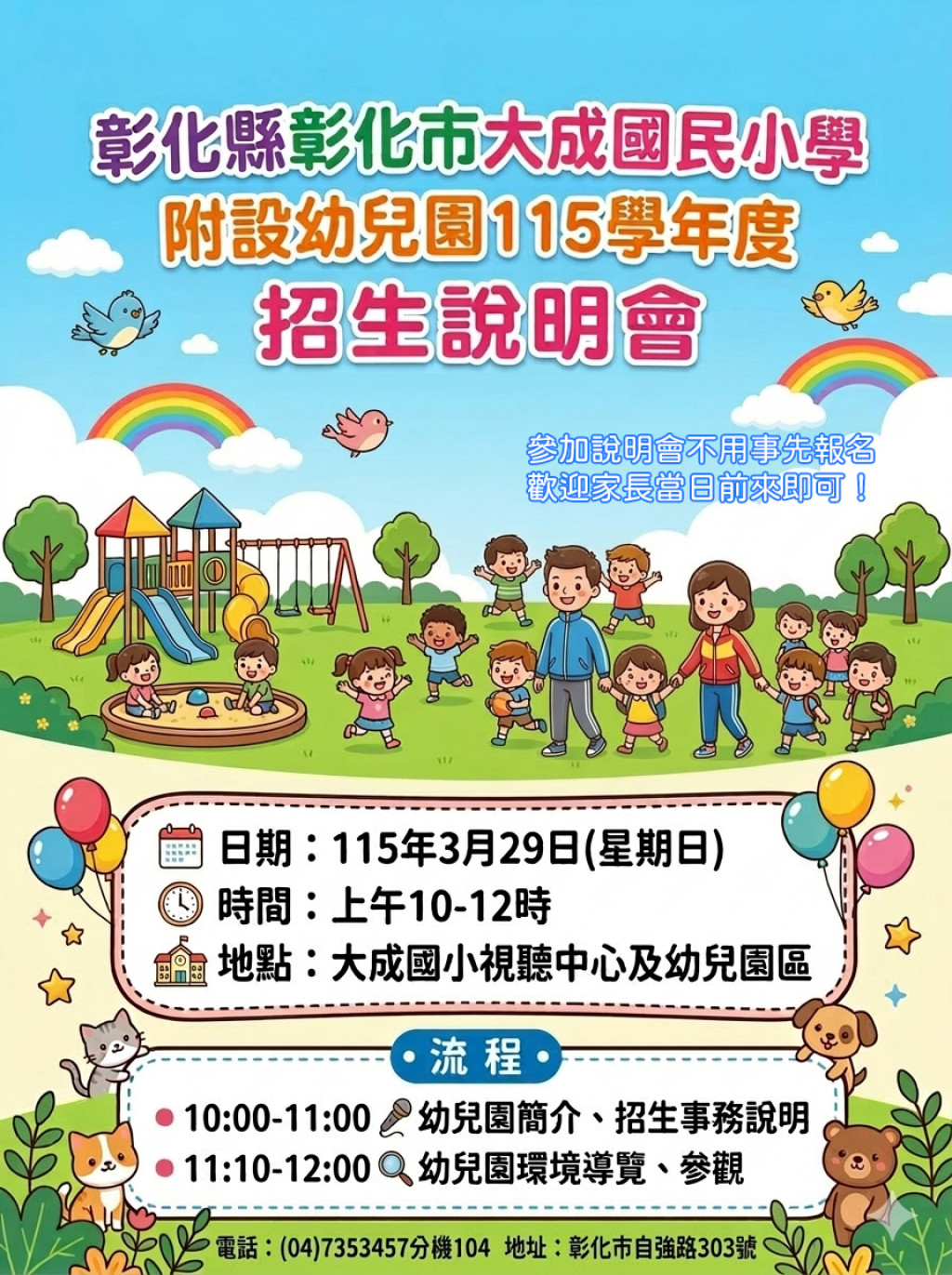 彰化縣彰化市大成國民小學附設幼兒園 辦理115學年度新生入學招生說明會