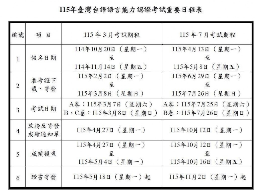 教育部臺灣台語語言能力認證115年3月考試簡章公告,請師生踴躍報考。
